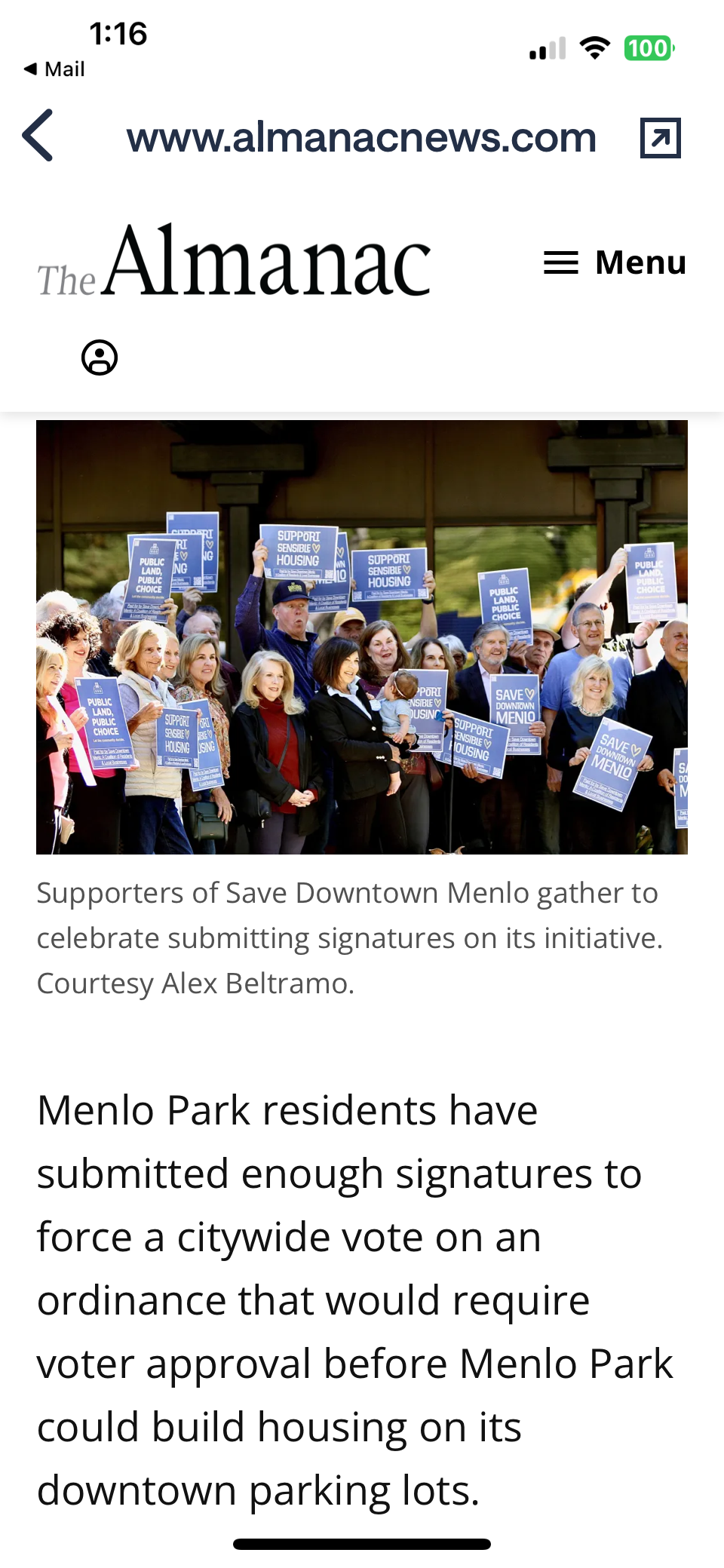 You were not voted into office to oppose the will of the residents and businesses of Menlo Park.